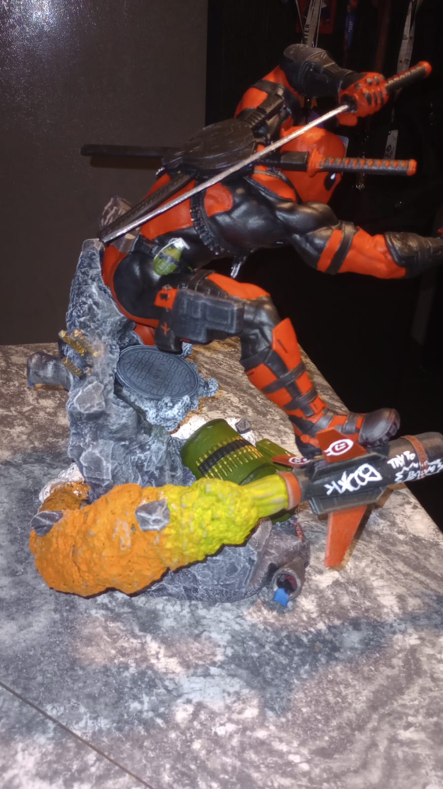 Figura de dead pool impresa en 3D con plastico PLA de 50 cm de altura,